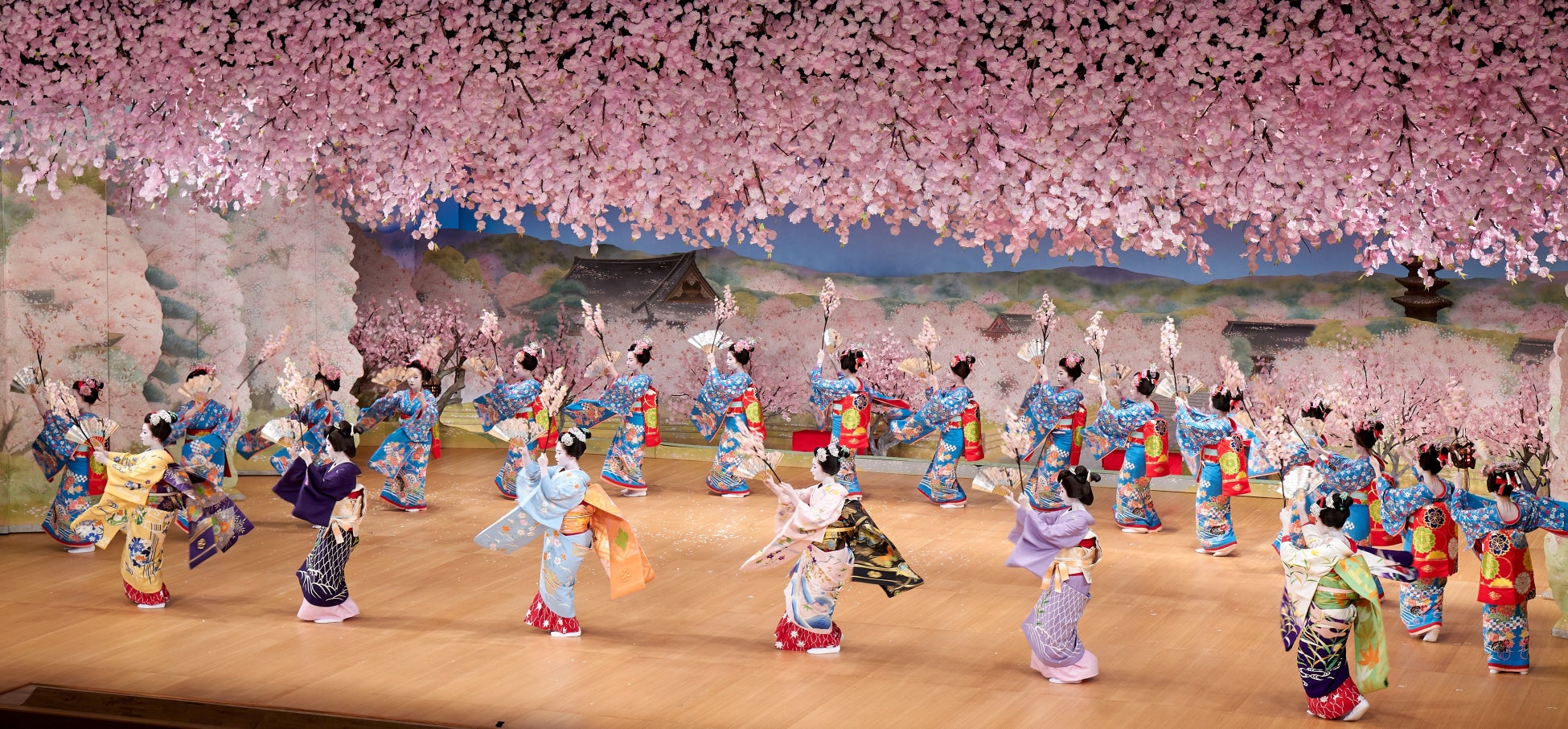 公演時間は、約1時間。全八景(8つの物語や景色)で構成されており、「ヨーイヤサー」の掛け声で幕が上がると、一度も幕を下ろすことなく、場面ごとに華やかな衣裳をまとった芸妓・舞妓が次々と現れて舞の世界へといざないます。毎年新調される衣裳も必見です。