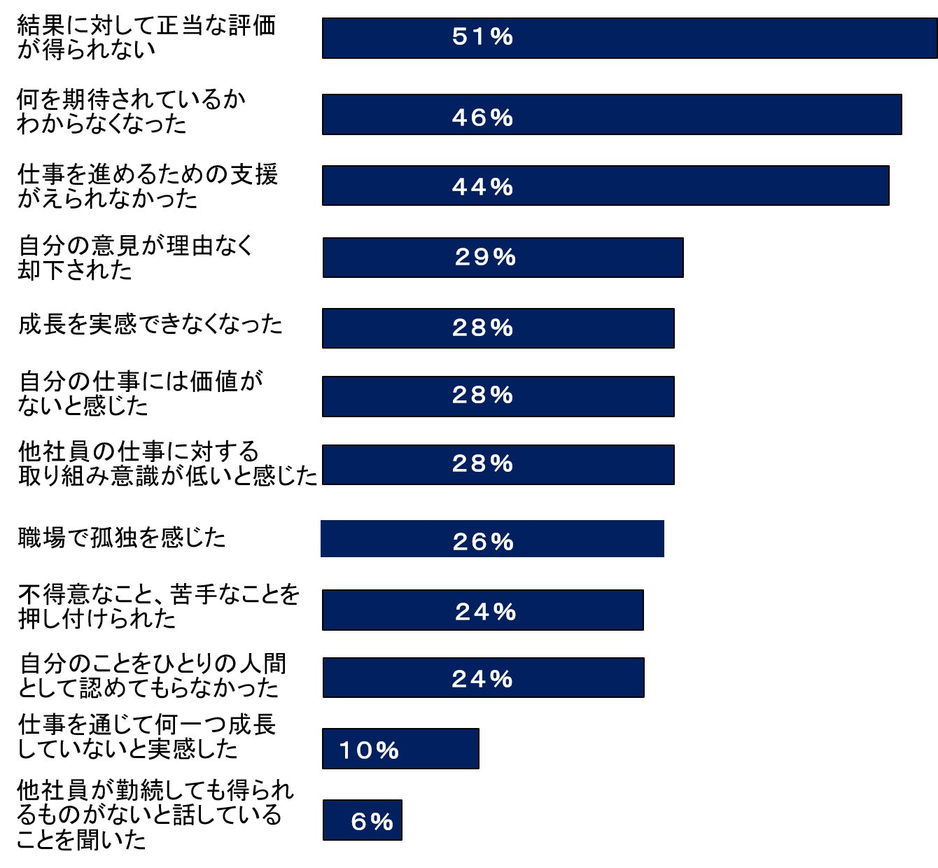 “最もやる気がなくなる”のは、「結果に対する正当な評価が得られないこと」との結果