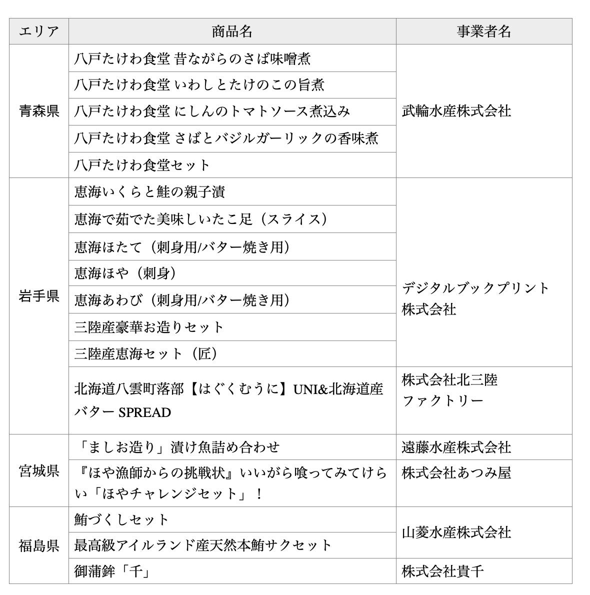 青森・岩手・宮城・福島の海の幸を使用した商品を2022年12月26日(月)よりECサイトで発売