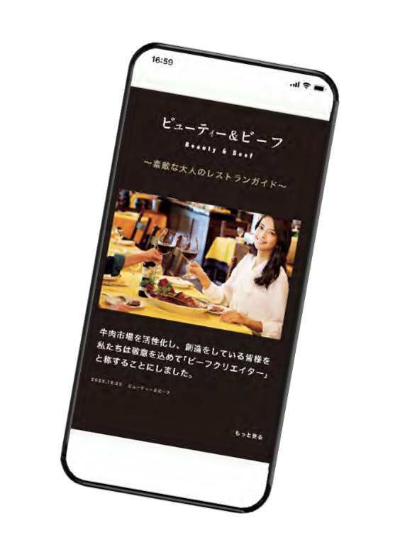 牛肉のブランド価値を高めてくれた功労者、そのひとつが近年のエイジングビーフやNYスタイルの「高級ステーキハウス」です。現在人気の「高級ステーキハウス」でのビジネスやデートでのおもてなしディナー。この人気をブームではなく、しっかりと定番化することは「高級ステーキハウス」で食する「輸入牛肉は高級でおいしい」という素材自体のブランド価値の定着に繋がる重要なポイントです。この企画では華やかな場所での経験が豊かな素敵な大人をお迎えし、取材対象の各店「高級ステーキハウスの責任者」が実際にエスコートし、その店の最高のおもてなしをプレゼンテーション。私たちはそこで展開される「素敵な大人と高級ステーキハウスの素敵な相関」の瞬間と魅力を余すところなく撮影し、記事にして配信し、拡散します。「高級ステーキハウス」と「素敵な大人」が互いのブランド力で高め合う事で、シナジー効果を創り出す。すべての飲食店経営者と責任者のセンスアップと店舗開発マインドを刺激するシーンシュミレーションを発信していきます。