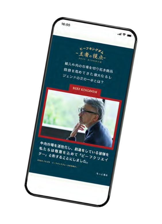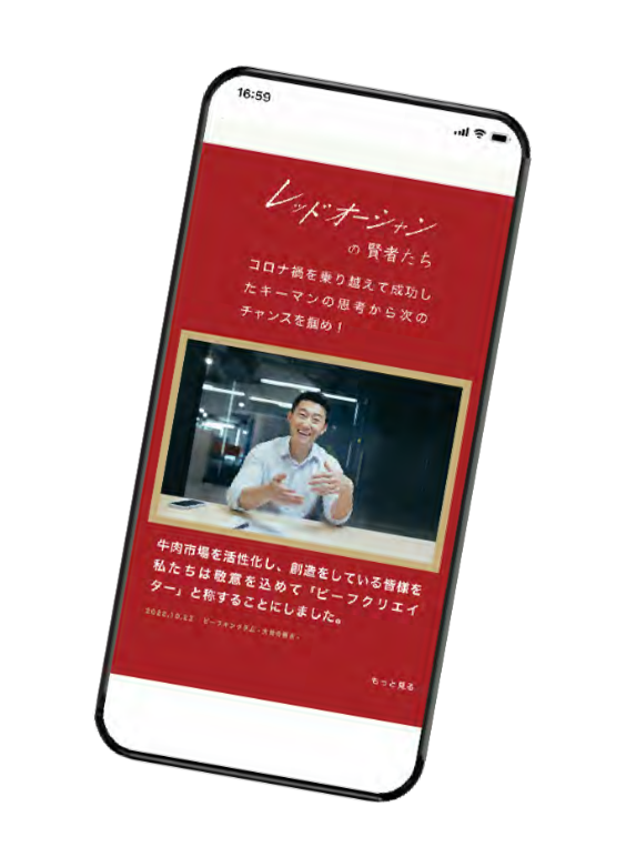 ビーフの各ジャンルで成功を収めた「偉大なる王者」の次の一手とは?四半世紀のデフレから緩やかに脱出を試していた日本経済の流れと同じく、2005年のアメリカ産牛肉輸入再開で堅調に推移していたビーフ市場。しかし、2019年12月に発生した新型コロナウィルス感染症の世界的な蔓延でその流れと景色は一変。外食産業は大きなダメージを負い、かたやスーパーマーケットなどの量販店や食品メーカーはかつてない大きな需要に恵まれる状況へ。ようやく終焉を迎えようとするコロナ禍で、生き残った王者はこの時期をどう考え、どう乗り越え、どう未来を見据えているのか?ビーフ業界にとどまらず、すべての経営者とビジネスパーソンが参考にしたくなる「偉大な王者」たちのリアルタイム列伝を配信していきます。