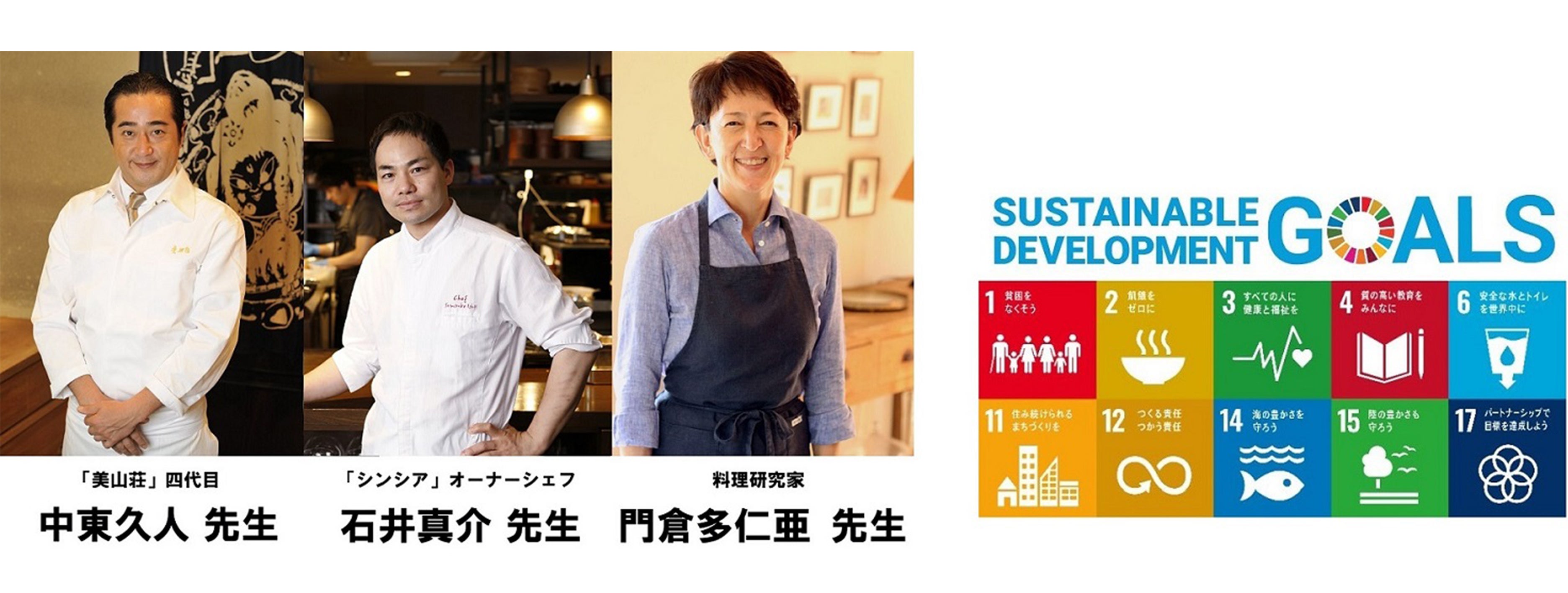 2023年1~3月に全3回シリーズで開催します。ミシュランガイド「グリーンスター(*)」を獲得している 中東 久人 先生・石井 真介 先生 や、ドイツ流のライフスタイルを取り入れている 門倉 多仁亜 先生 を招き、“食の未来のために私たちが食生活の中で今できること”を一緒に楽しく考え、実践するためのコツを、料理の実演を交えて紹介します。