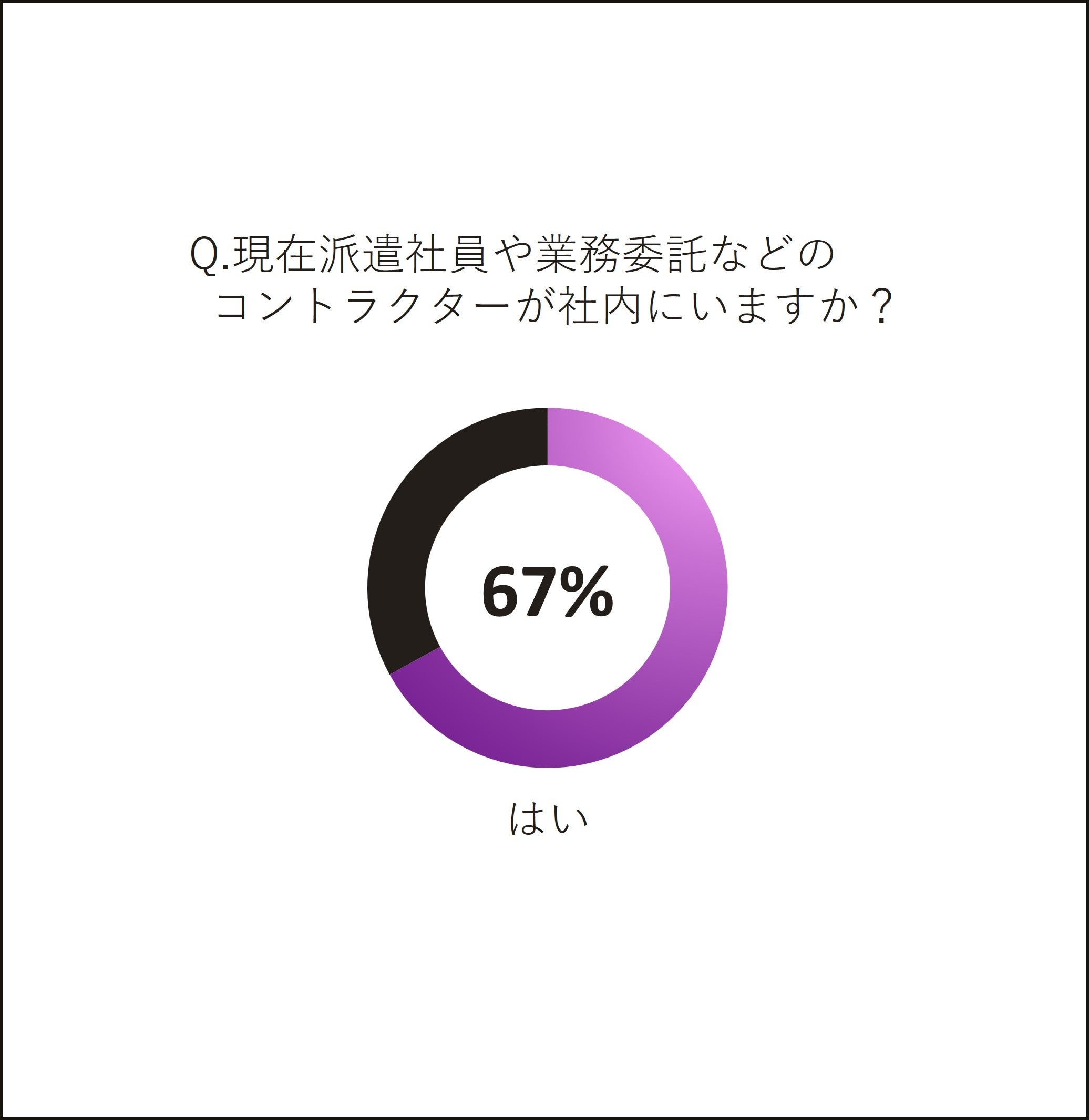 日本でスキルを持つ求職者の方々に向けて行った調査では、参加者の74%が現在正社員として働いているものの、全体の75%がコントラクターとして働くことを検討すると回答しました(すでにコントラクターとして働いている人を含む)。これは、現在正社員として働いている方の中でも少なからぬ数の方が、コントラクトでの仕事に興味を持っていることを示しています。