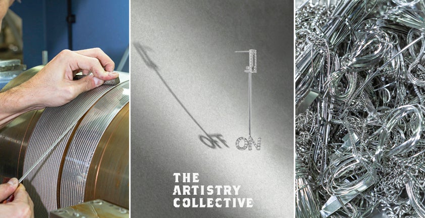ジュエリー製造には様々な方法がありますが、全ての方法に於いて人の手が重要になります。例えば、チェーン製造の場では、機械化・自動化が進んでいますが、貴金属は常に同じ状態を保つことが難しく、そこには、必ず熟練した職人による判断や調整、多岐に渡る工程の中にある100以上の検査項目により、安定した品質の良いチェーンが出来上がります。また、ジュエリー製造の現場では、廃棄する材料(地金)はなく、チェーンの切れ端やカットクズ、プレートからくり抜いた後のもの、厳しい工程内検品に通らなかった材料などを回収、溶解し新しい材料に戻すことを繰り返します。ジュエリー製造は、非常に緻密且つ稀なサステナブルな業界です。
