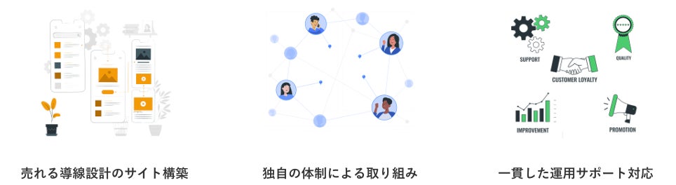 弊社はEC運営改善のサポート事業をメインとしているため、ただECサイトを作るだけではなく、運用改善ノウハウをいかした売れる導線を考えたサイト構築が可能