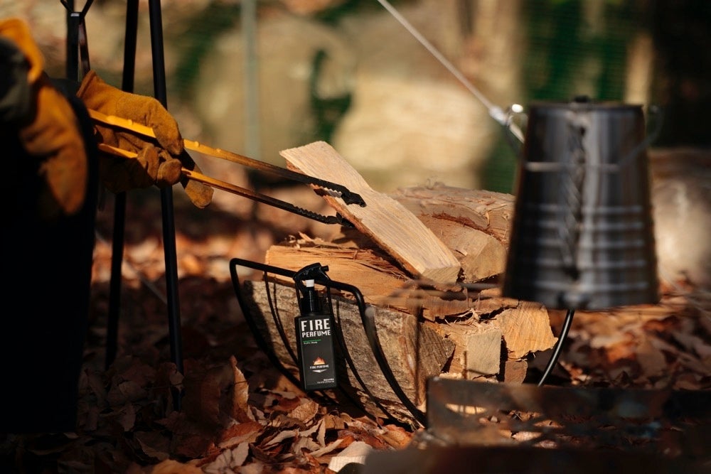 焚き火をもっと楽しむための新しいギア。焚き火専用の香水がデビュー