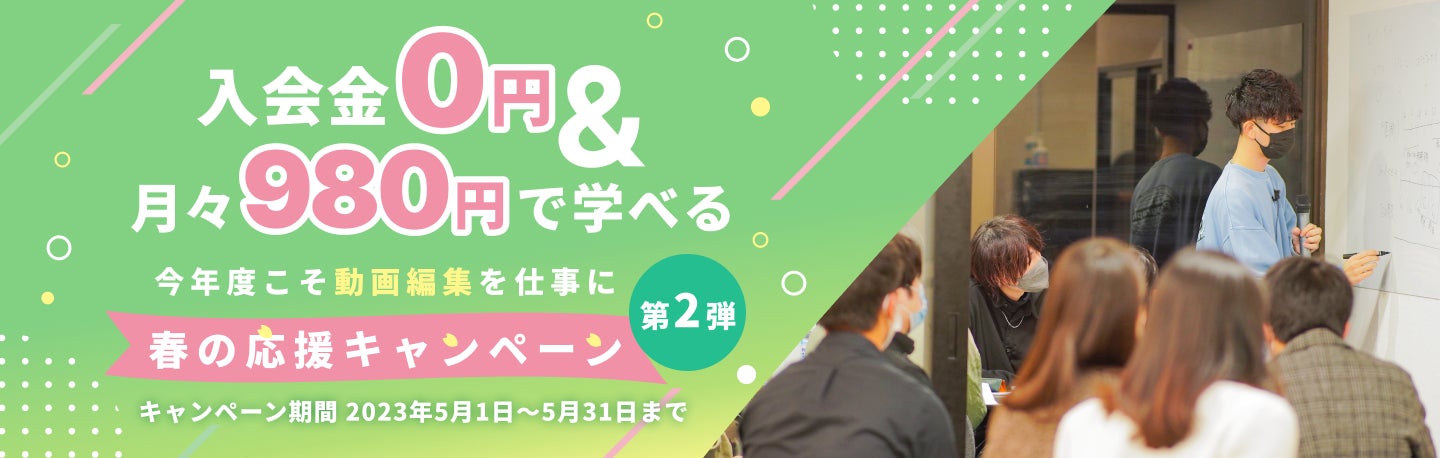 初月980円、月2980円で教室も使えて動画編集も学べる新プラン登場。期間限定で入会金も今なら0円。