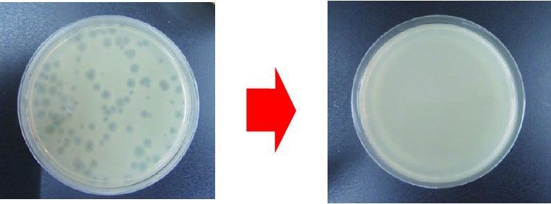 銅が持つ高い抗菌性をナノで増強する用途開発ができないか、予備実験に着手したところ、1分で大腸菌が検出不能レベルまで低下したのです。この驚異的な抗菌性能を世の中に届けたいと、研究者魂に火がつき、担当研究者と開発に日夜没頭しました。