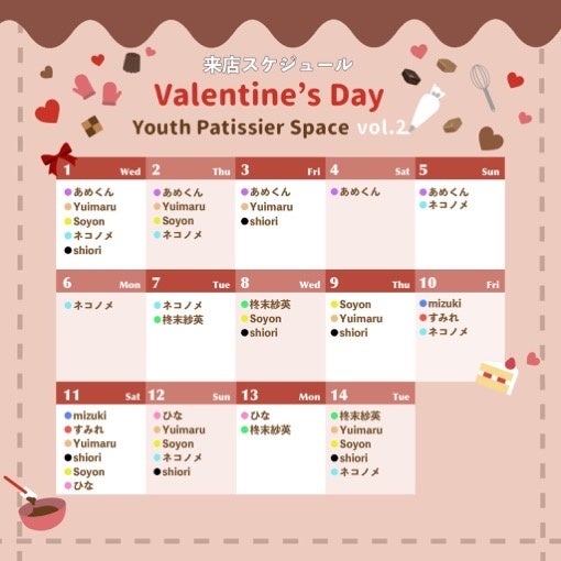 それぞれのパティシエの来店スケジュール、出店スケジュールをチェックしてぜひご来店ください.