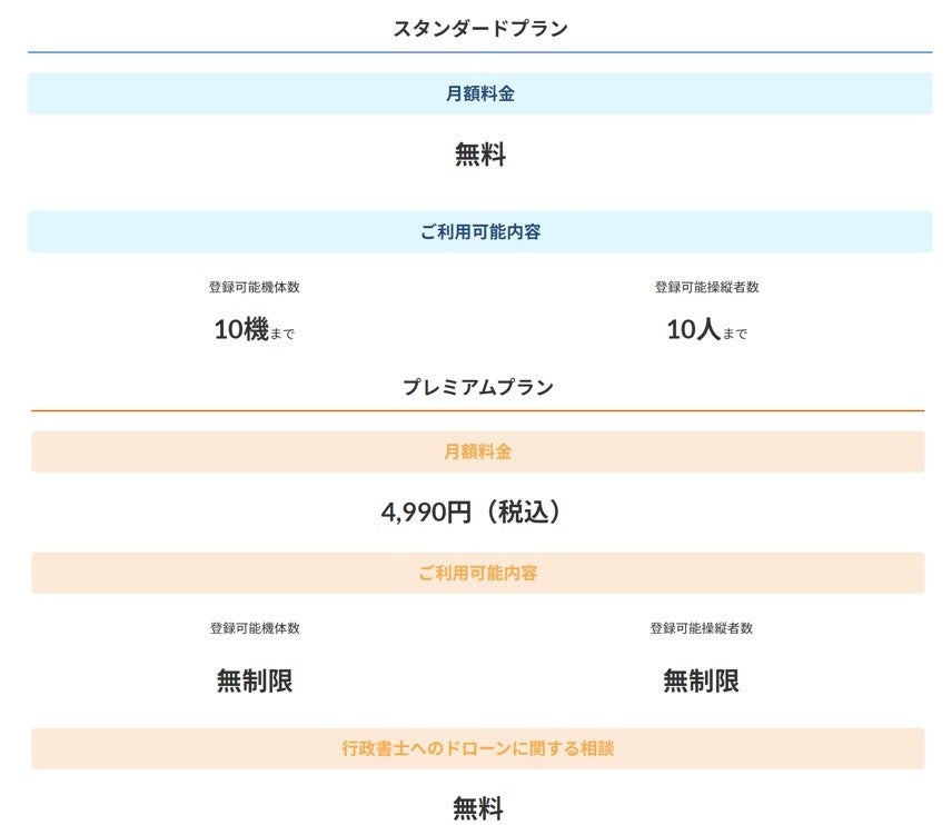 飛行日誌の作成に必要な機能が全て備わったスタンダードプランが無料でご利用できます。