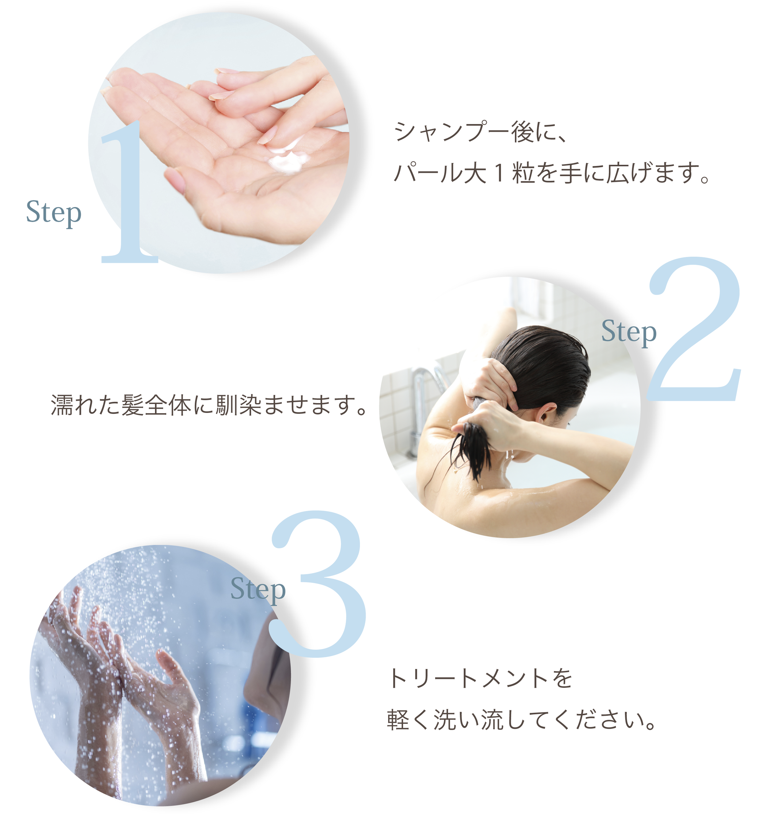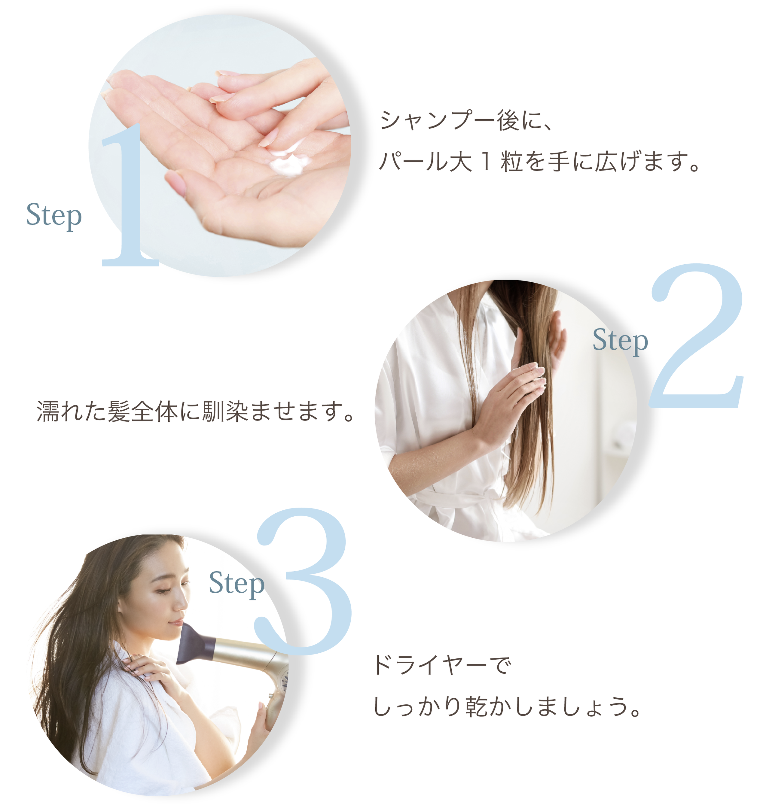 髪の内部から外のキューティクルまでしっかり栄養素を行き渡らせ調整します。