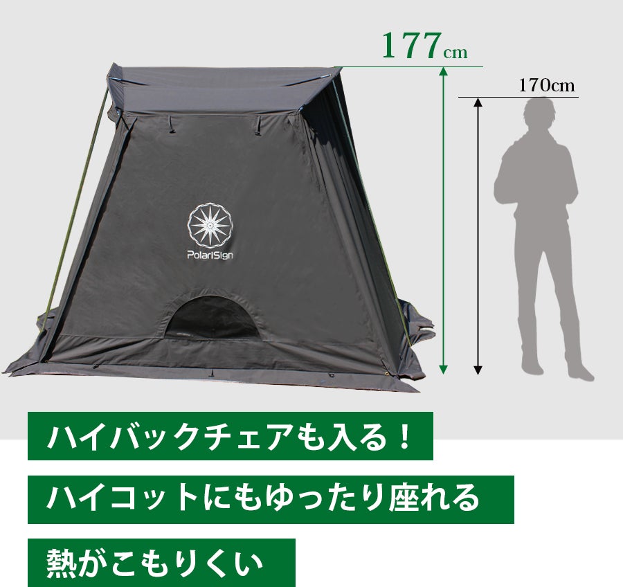 ・テント本体:難燃加工 TC (ポリエステル65%、コットン35%)