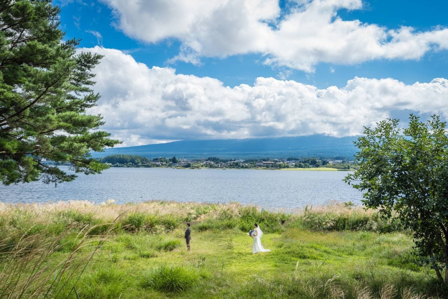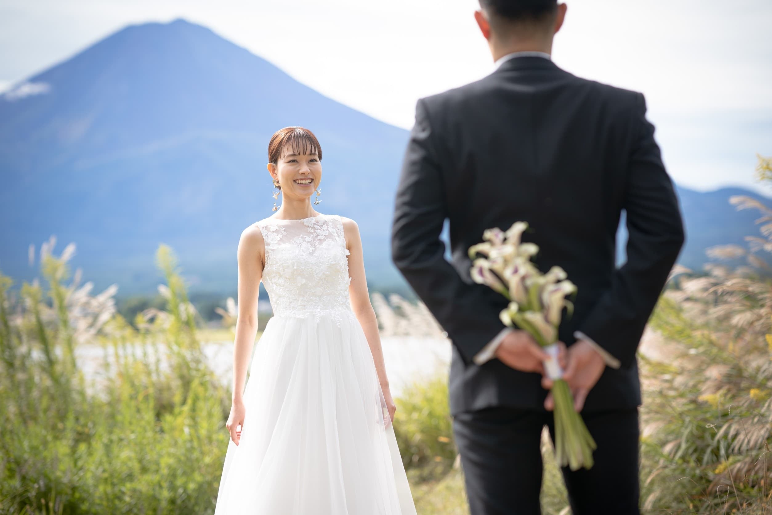 富士・河口湖ならではの壮大な景色を楽しみながら過ごす2人のフォトウェディングプランを提供します。富士・河口湖には魅力的な景色が多くあり、河口湖に詳しいフォトグラファーと共に巡る景色は、まるで河口湖を旅しているような気持ちにさせてくれる体験です。
