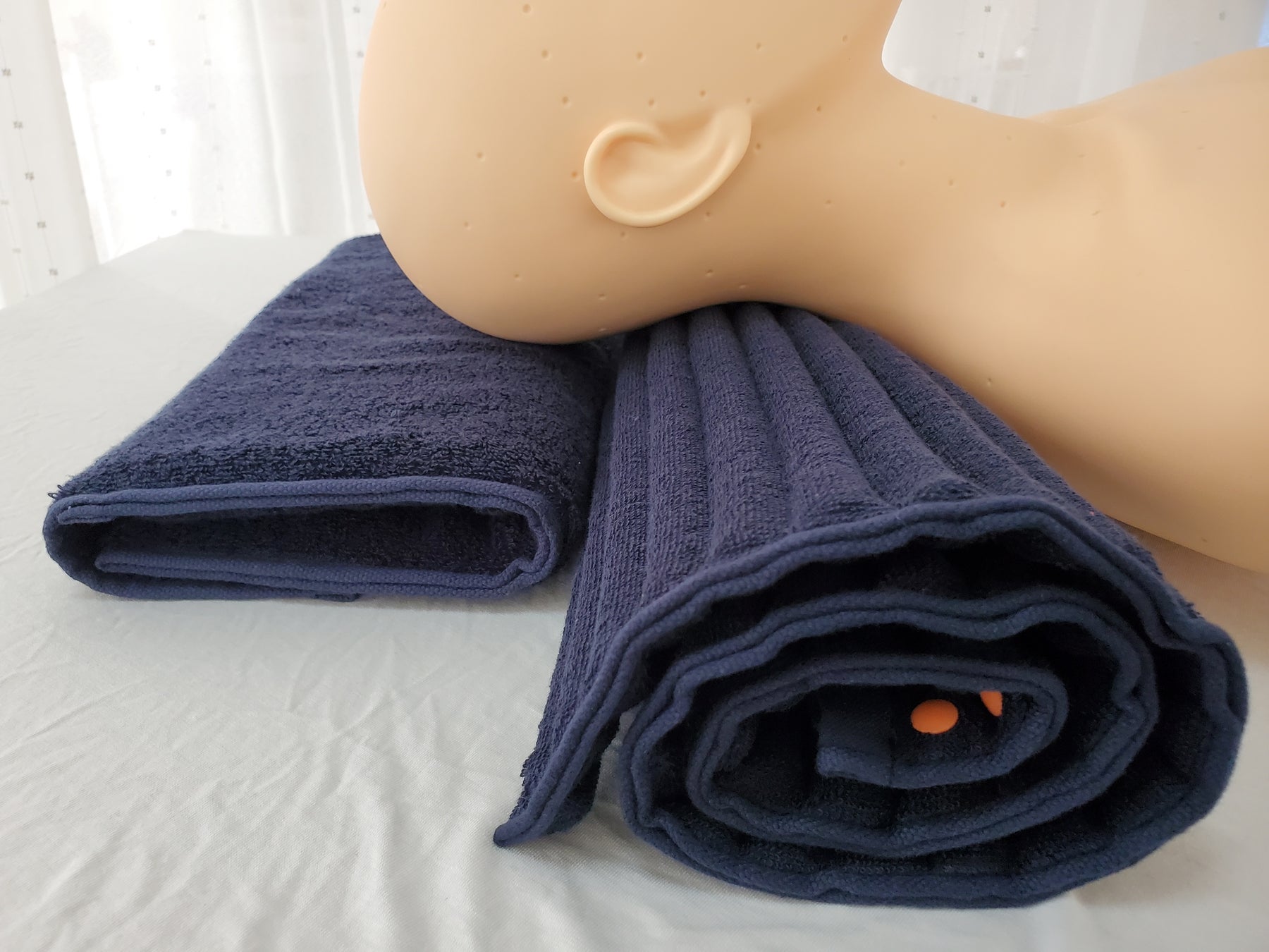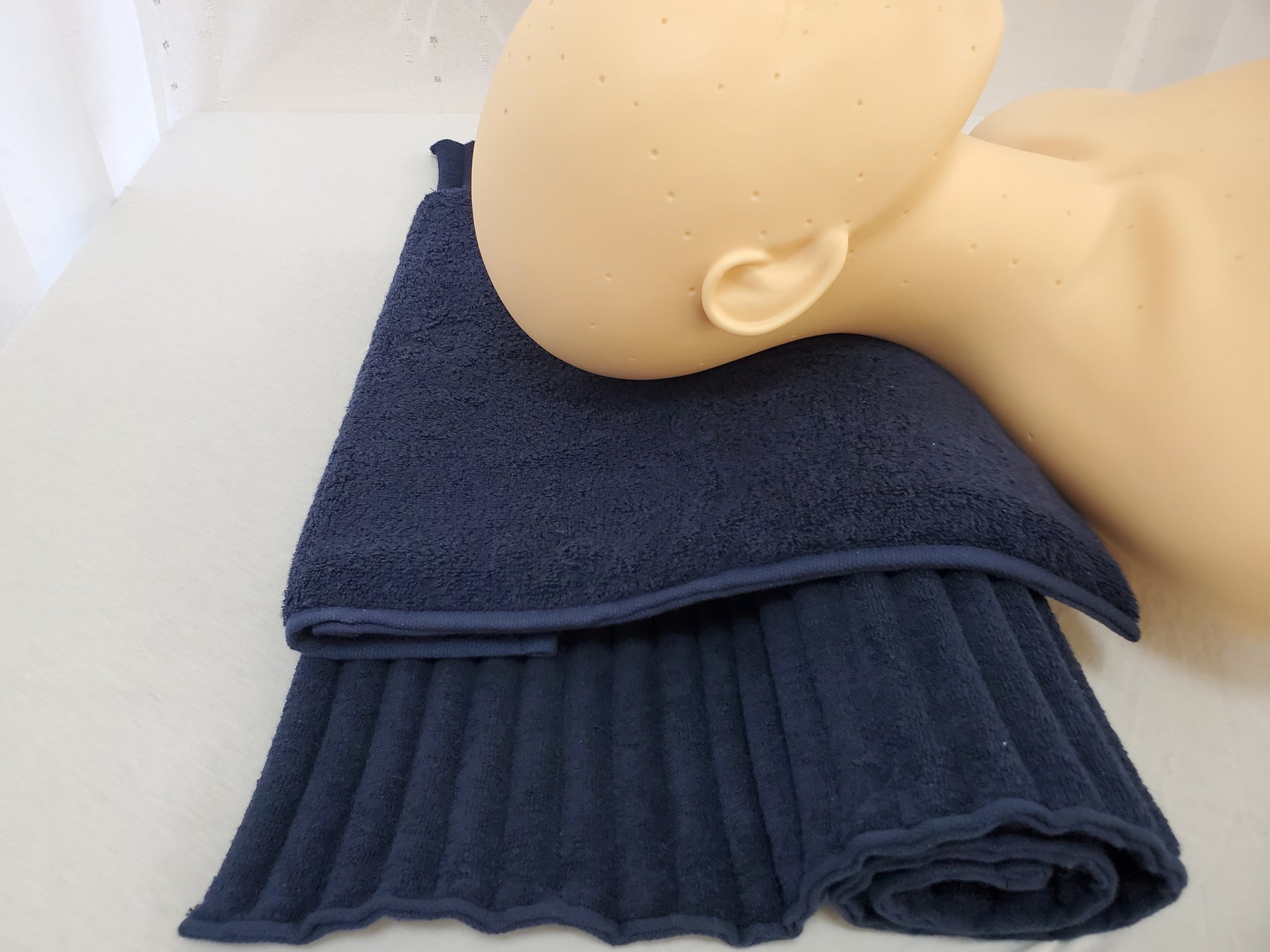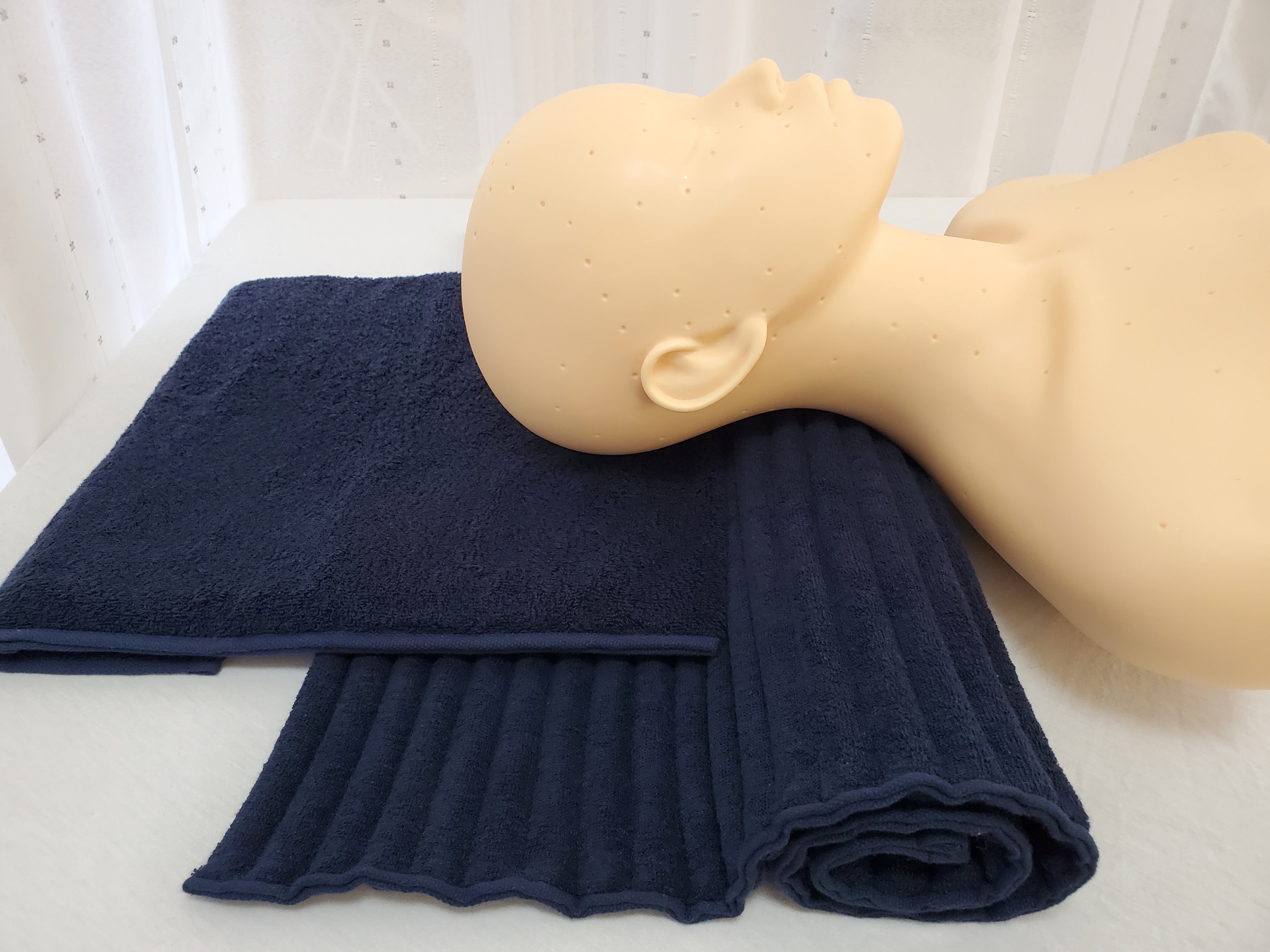 本製品は、綿100%の今治製のタオル生地の中に、ほどよい柔らかさのスポンジウレタンを入れたものです。使い方は『コリ吉ロール』の上に重ねるようにして使用します。もう少し首にふわふわ感が欲しい方をはじめ、頭部用のクッションとして、その日の気分によりお使いいただけます。この2品を組み合わせる事で首と後頭部の高さプラス使用感をご自身で簡単に調整を行うことも可能としました。