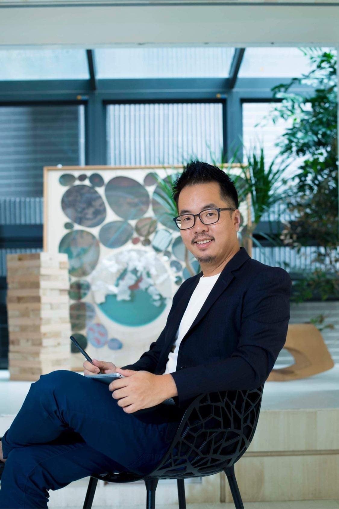 (左)ジョニー・チウ氏(右)ジョニー・チウ氏がデザインしたアウトドアチェア「BLOOM」