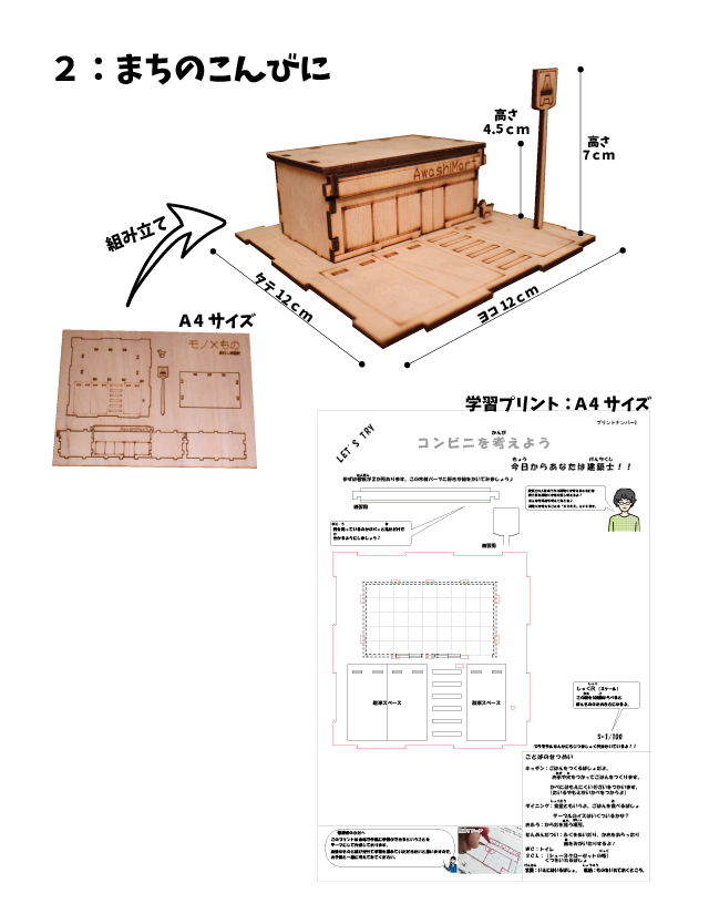 ・木の模型キット(おうちもけい/まちのこんびに/ようふうのおうち)