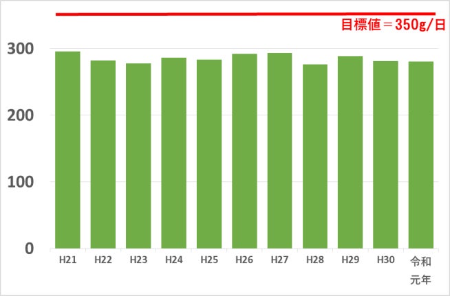 ※2:「厚生労働省 健康日本21」が推奨する1日の野菜摂取目標量は350g ※3:平成22年~令和元年国民健康・栄養調査(厚生労働省)での日本人の平均野菜摂取量は約290g