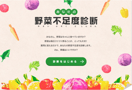 診断結果に応じて、野菜摂取に関する気づきも得られるようになっています。