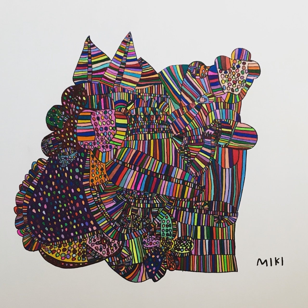 MIKIはダウン症を持ちながら出生し、早期療育の中で筋力の訓練など兼ねて 1 歳 4 ヶ月頃から鉛筆を握り、絵を描くことを始めました。そして描くことに興味を持ち、描き続けて24歳となった現在、MIKIは独特の色彩感覚で150色もの色鉛筆を操り、極めて緻密な筆使いで鑑賞者を作品に没入させながら、笑顔や癒しを引き出すような作品群を創作するアーティストとして注目されています。