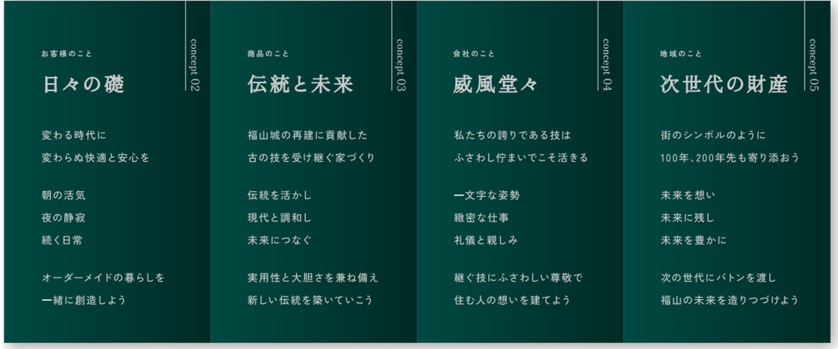 技術力の高さから、福山城 伏見櫓の修繕も手掛ける坂本工務店は、「THE MEISTERS」をミッションに掲げ、職人としての技術力と伝統を胸に、新しい伝統の構築とさらなる成長を目指して邁進いたします。