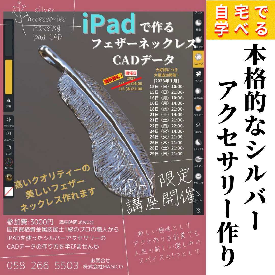 自宅にいながら、ipadを使って本格的なシルバーアクセサリー製作するスキルを身につける事が出来ます。