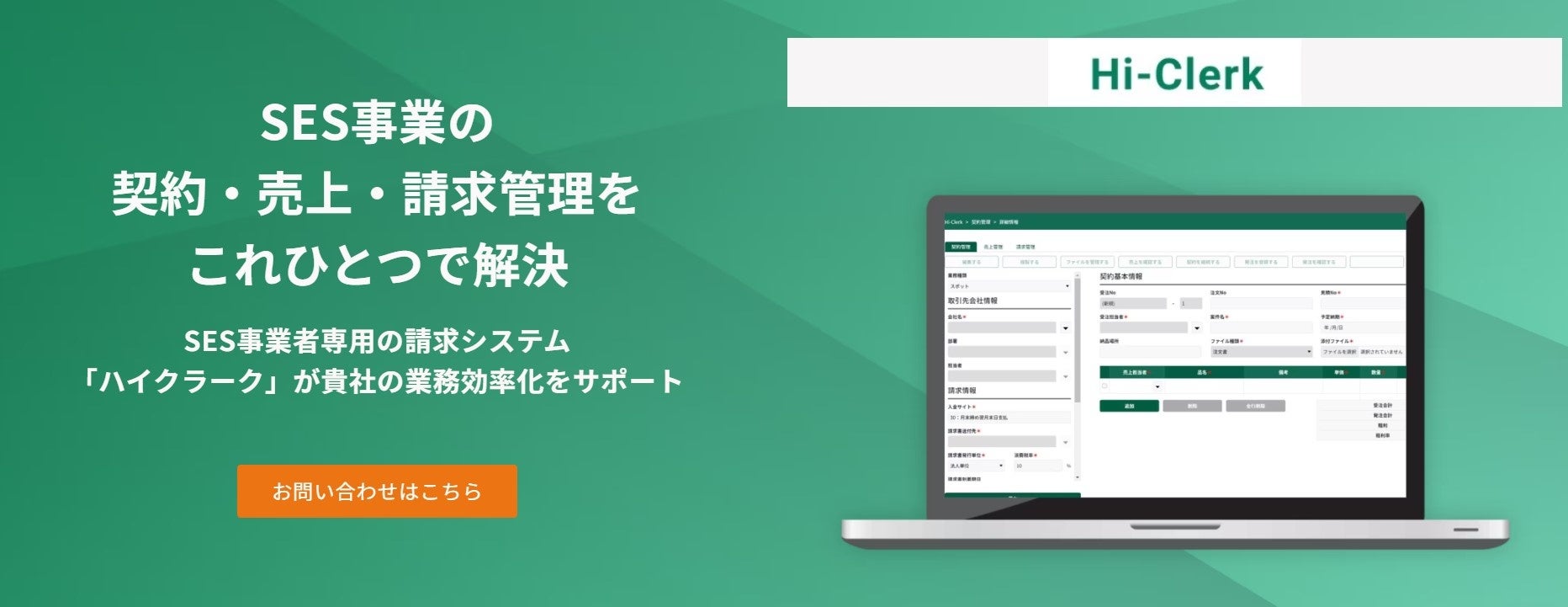 SES事業者向け契約・請求管理ツール「Hi-Clerk(ハイクラーク)」2023年6月1日より無料登録からのサービス提供を開始