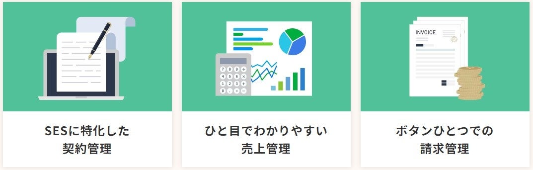 SES事業の複雑な請求回りを契約管理から請求書の作成をワンストップで管理。属人化の防止をコア業務への専念を叶えます。