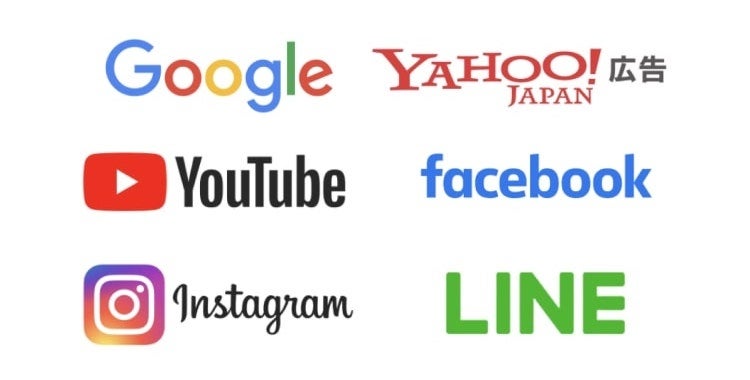 Google、Yahoo!、Facebook、Instagram、YouTube、LINEといった主要な広告媒体を網羅。