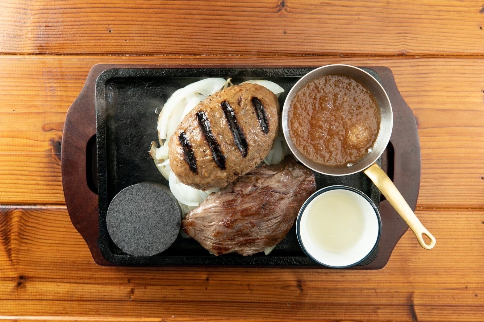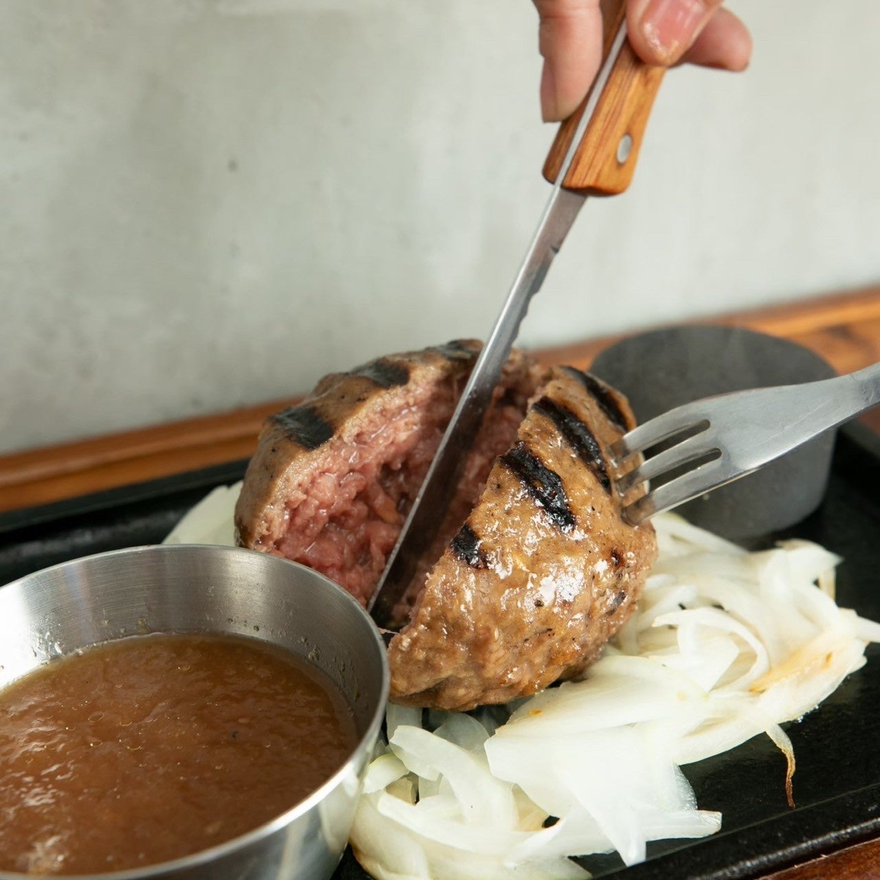 部位ごとに挽き方を変えた自家製ミンチやツナギの黄金比など、研究に研究を重ねたこだわりハンバーグです。 自分で焼き加減を調整できることも魅力のひとつ。 家族連れの方も多く、子どもからも大人気のハンバーグです。 ご友人やご家族との団欒にぜひご活用ください。