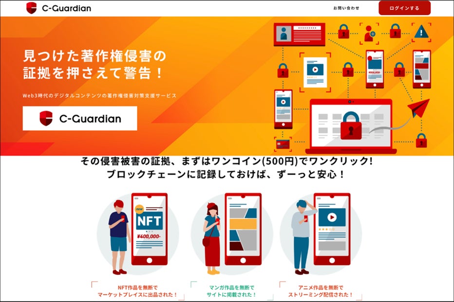 個人クリエイター向けC-Guardianでは、これまでの漫画、アニメに加えて、近年注目されているNFTの侵害の証拠保全も可能になりました。
