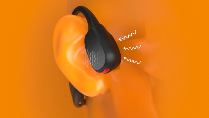 骨伝導技術が、頭蓋骨を通して音を伝送することで、耳の中にイヤホンを装着したり、耳を覆うようなヘッドホンを装着することなく、サウンドを体験することが可能です。サウンドが頬骨から内耳に伝わり、まるで魔法のように音楽が聞こえてくるでしょう。