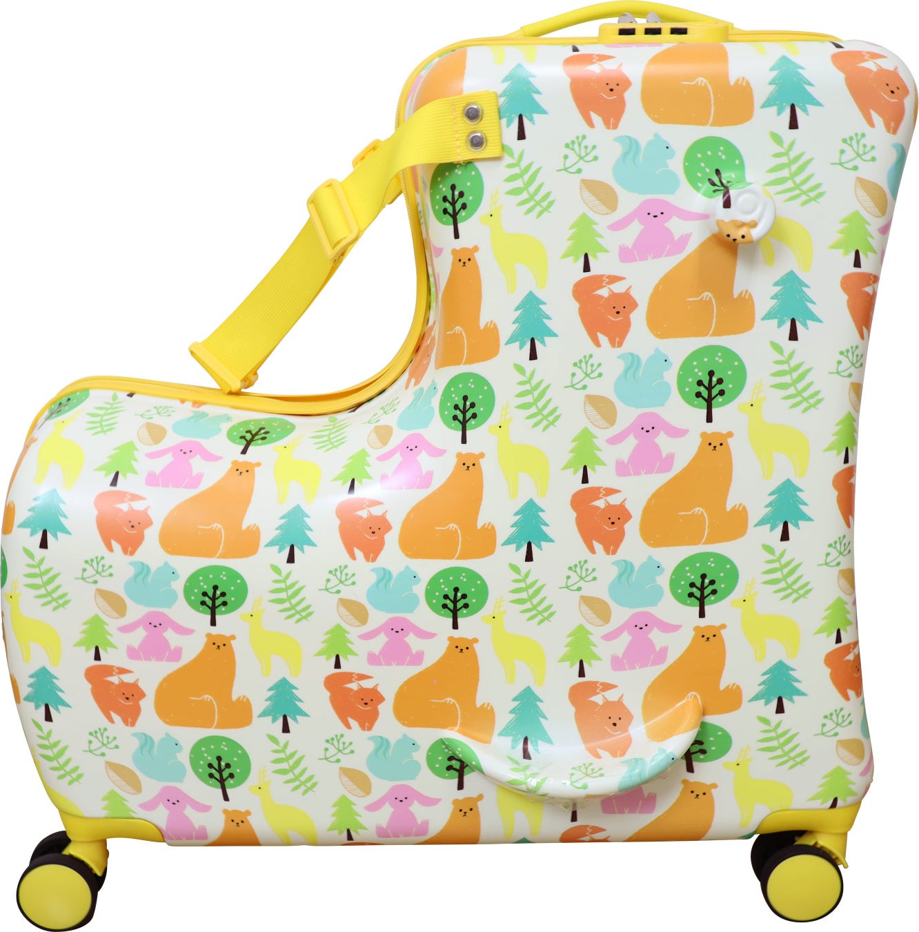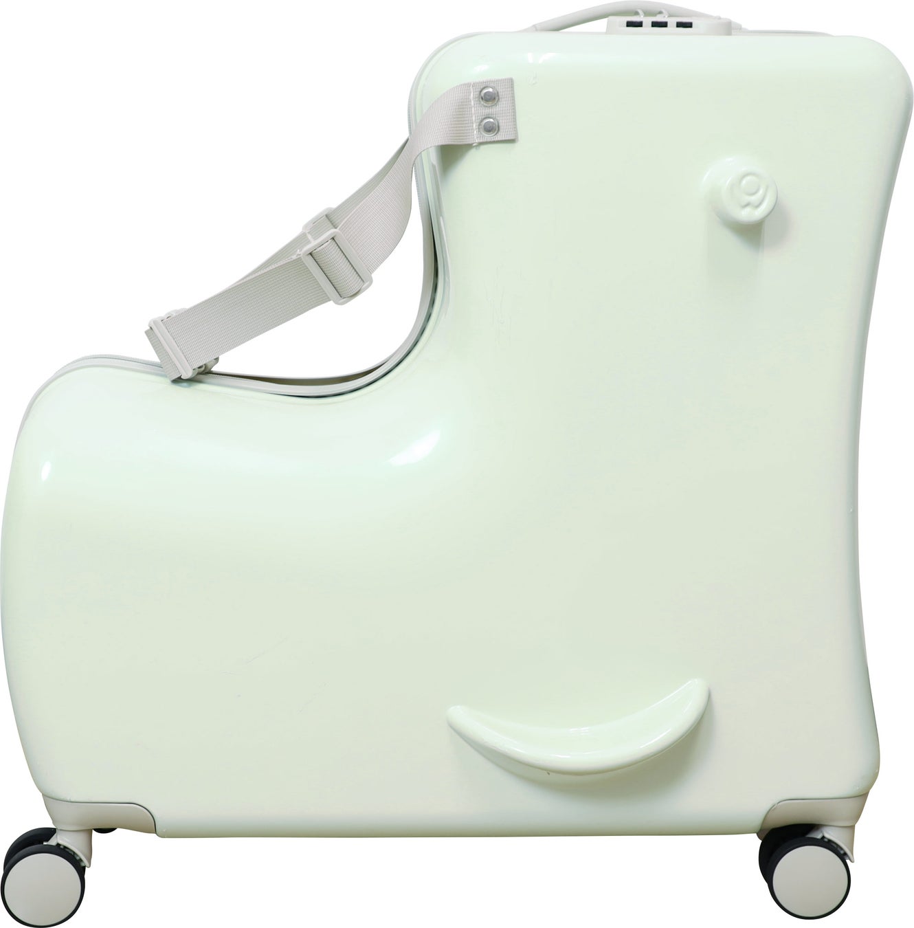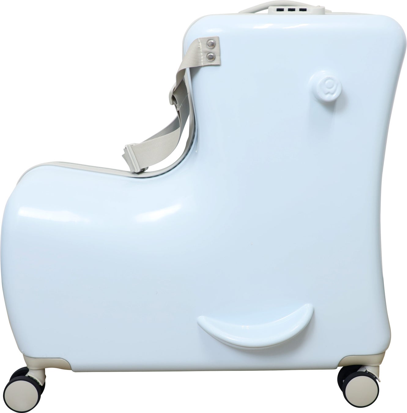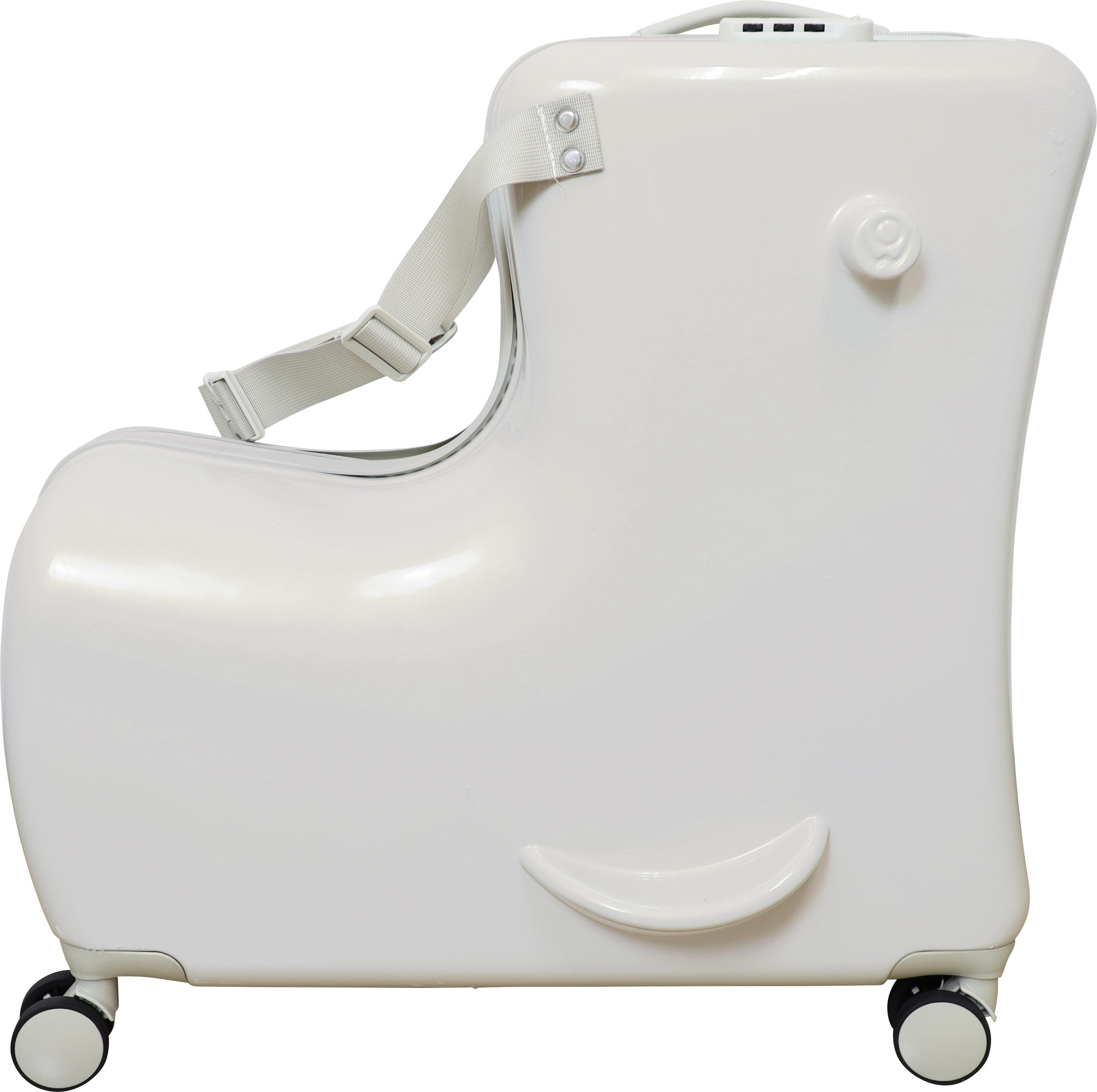 L字型の独特な形状で安全ベルト、足置き、ハンドルがついており、子どもを乗せたままスムーズに移動することができます。また、旅先で起こりがちな歩き疲れ、抱っこなどの問題を解消する他、待ち時間には椅子代わりに、迷子や飛び出し防止など幅広いシーンで活躍します。