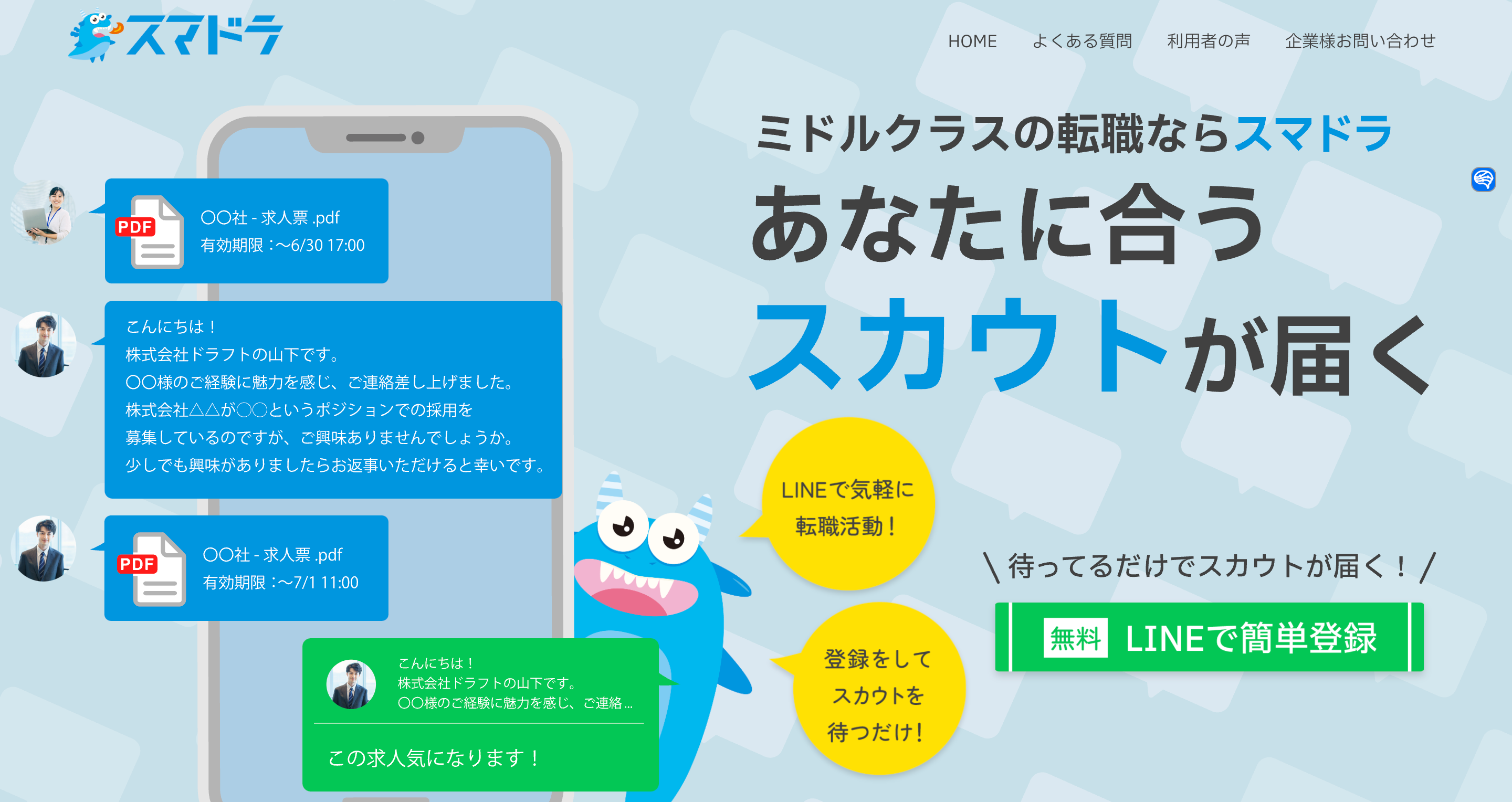 LINEであなたに合うスカウトが届く「スマドラ」https://suma-dora.com/