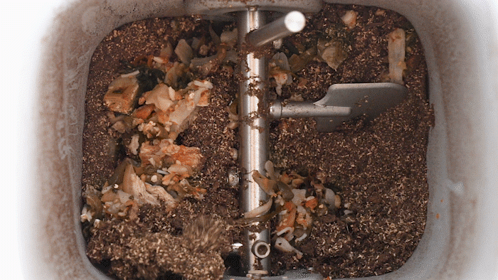 生ゴミを入れて蓋を閉めるだけで攪拌棒が回転し、自動で分解開始。