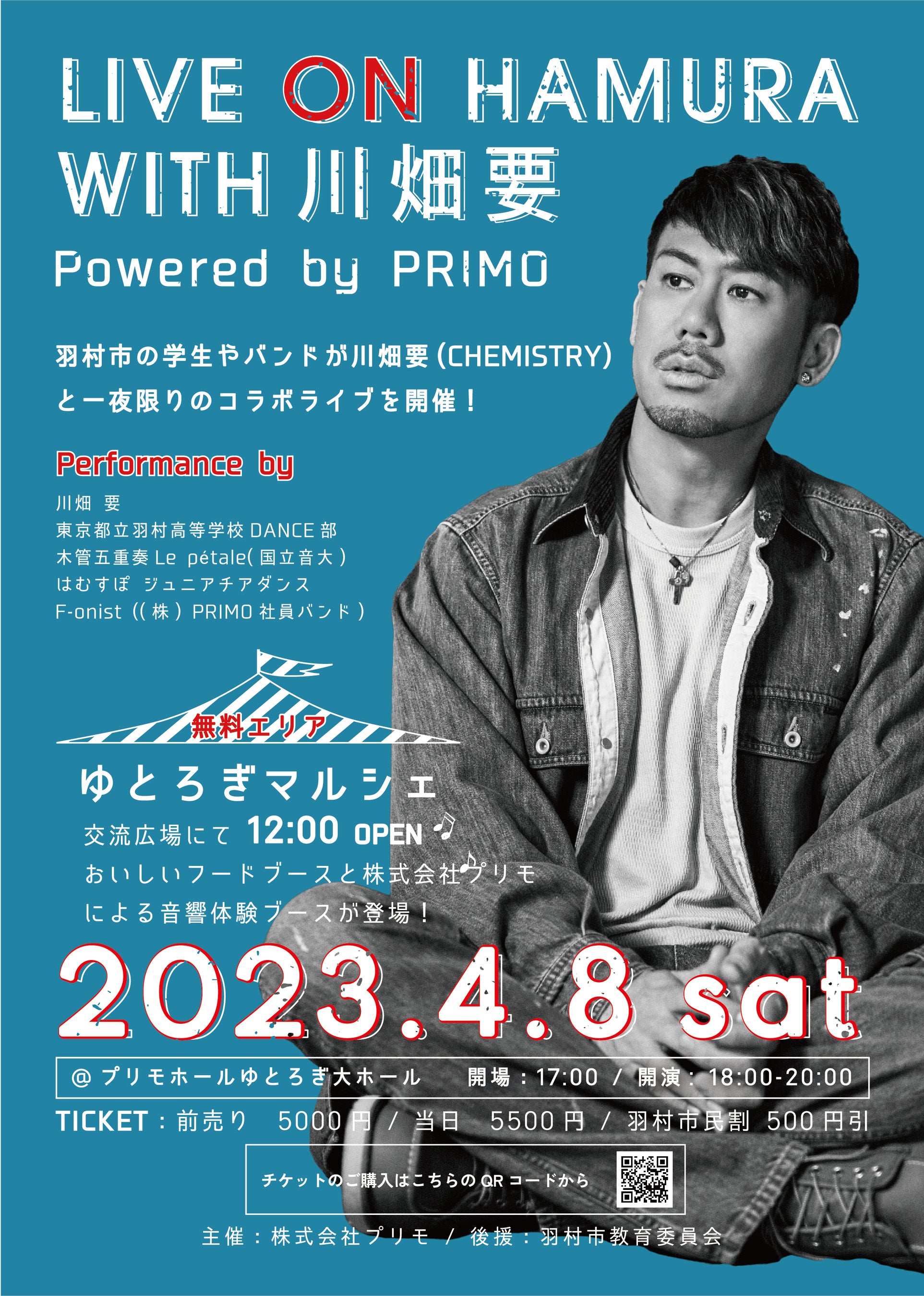 さらに無料エリアとして、ライブ前の12時〜18時にて羽村市内の美味しいフードや(株)プリモの特設ブースでのサウンド体験(内容乞うご期待)も味わえる【ゆとろぎマルシェ】もプリモホールゆとろぎ(屋外)にて開催!