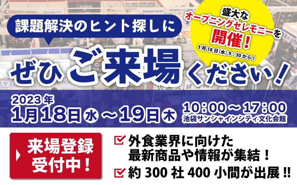 《今週1月18日,19日サンシャインシティにて開催!》約350社460小間の企業が、外食店・飲食店の皆様に向けて製品・サービスをご提案!