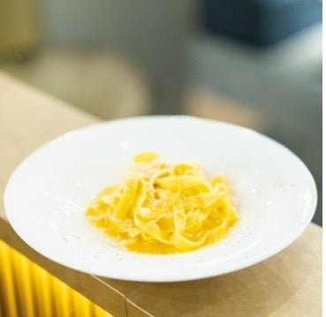 本場イタリアのレシピと同じく、生クリームは使わずに卵とグラナパダーノチーズで仕上げたカルボナーラに、フランス産のトリュフオイルをまとわせました。鼻孔をすり抜けるトリュフの香りとともに、贅沢感の溢れる味わいをぜひご堪能くださいませ。