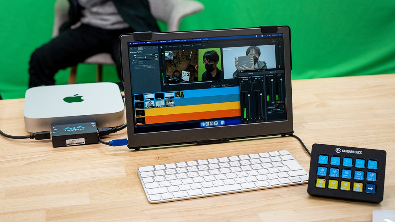 配信専用ソフトウェア (Telestream Wirecast Pro) がインストール済みのため、ソフトウェアを起動すれば即座に配信可能です。Wirecast は高品質なライブビデオの配信と録画が行え、シンプルな配信からプレゼンターやリモート出演といったこだわり配信まで、様々なケースに対応可能です。配信ソフトウェアはボタンで直感的に操作でき、ボタンへの割り当てはカスタマイズできます。