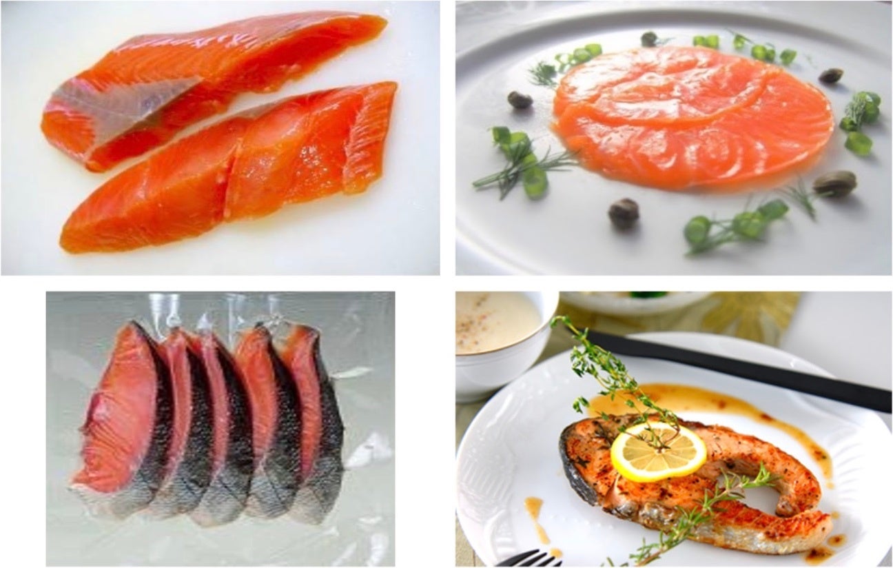 ・マリネーション(※写真右上):塩漬け、塩抜き、乾燥等、時間と手間のかかるマリネ加工を施したサーモンをお届けすることができます。