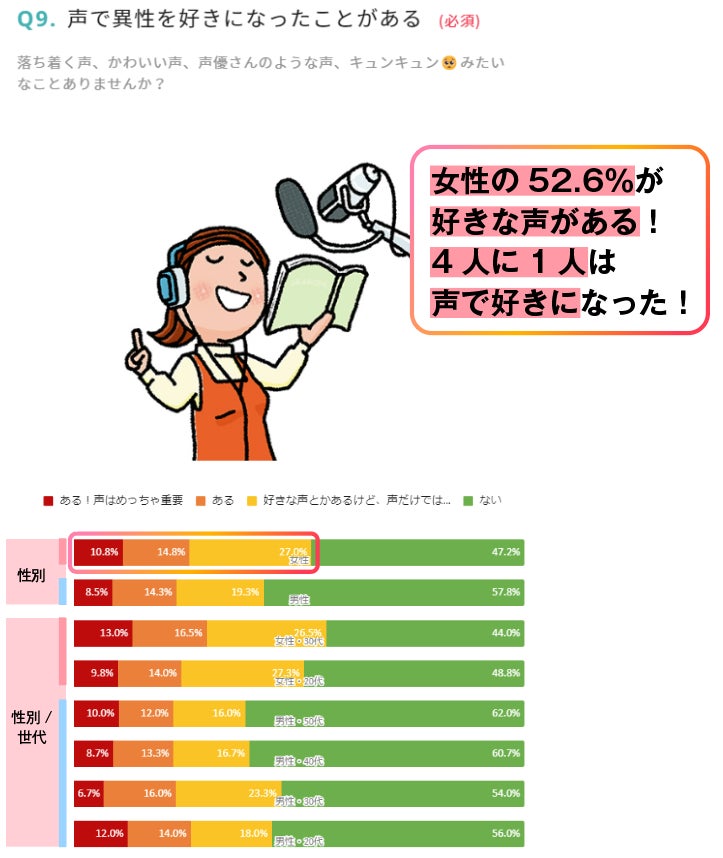 *女性の52.6%が好きな声がある!4人に1人は声で好きになった!