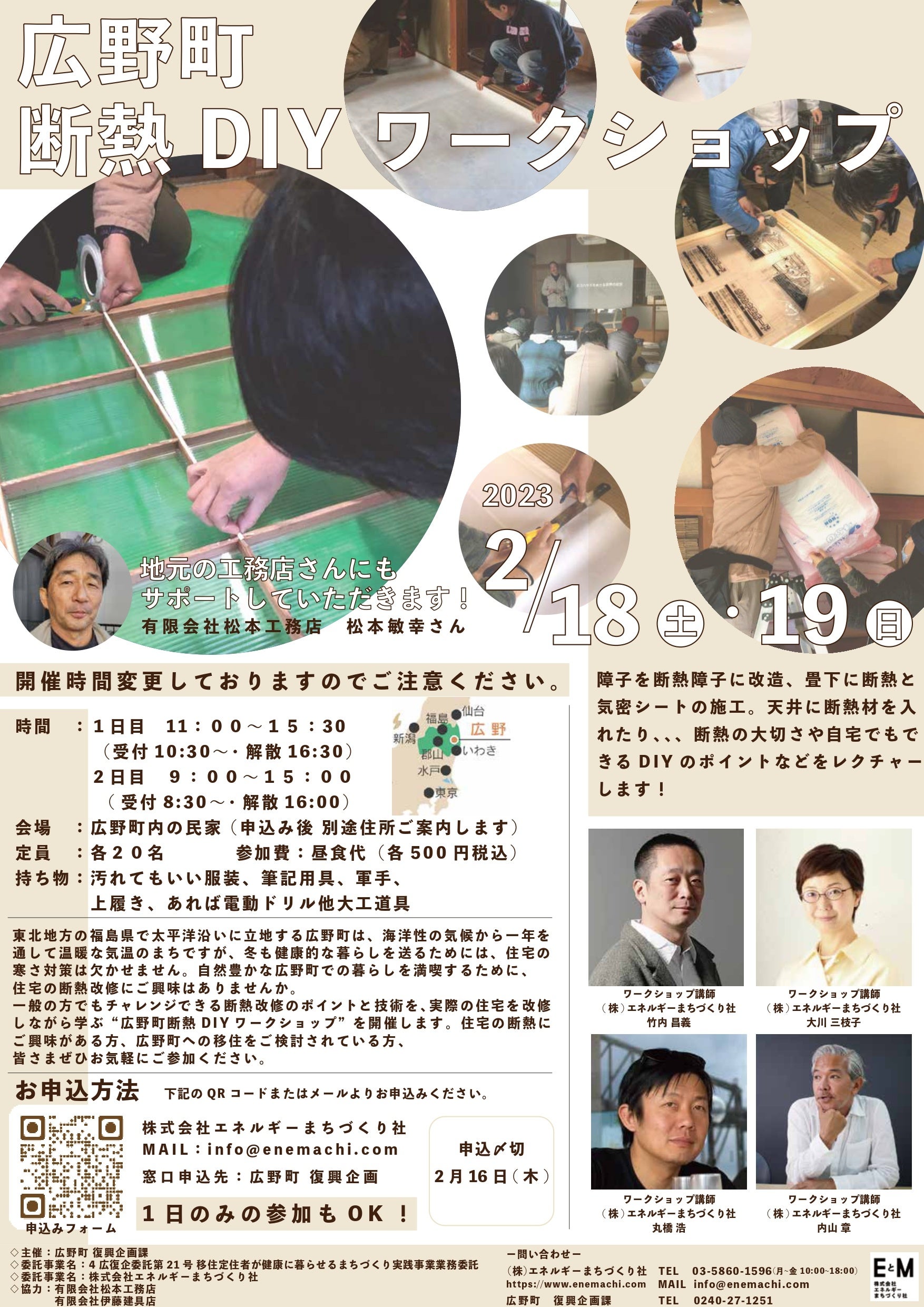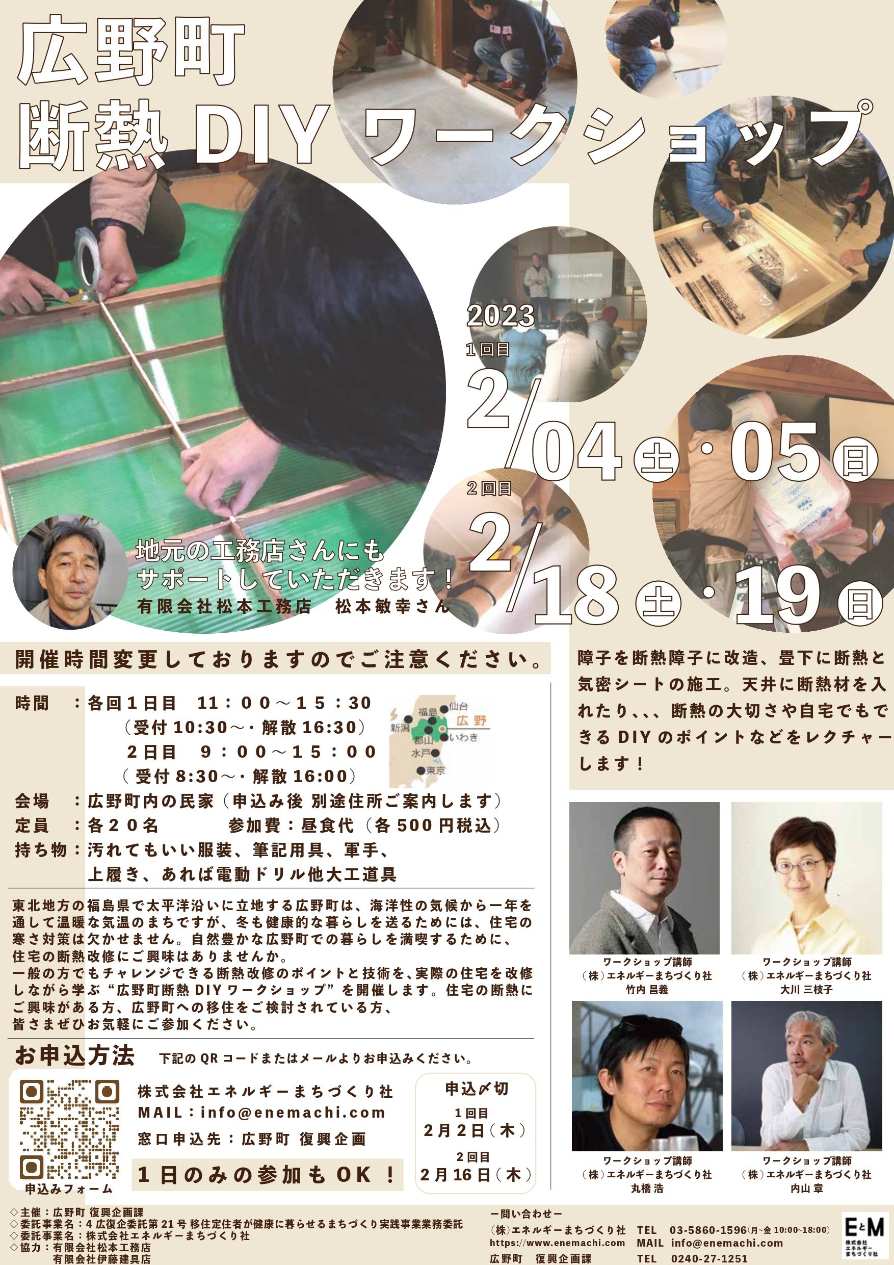 【広野町断熱DIYワークショップ】1日のみの参加も可能です。