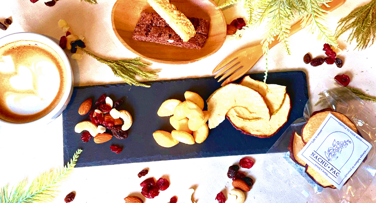 欧米諸国では日常生活のなかにオーガニックやヴィーガンなど健康に配慮した食文化が根付いており選択肢もたくさんあるなかで、日本では無添加や自然派の原料は贅沢品や高級品のイメージが強く高価なものが多いため、忙しい女性が日常的に楽しめるよう手頃な価格で健康に配慮したナチュラルおやつブランド『NACHUPAC(ナチュパク)』の立ち上げを決意しました。