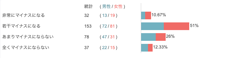 全くマイナスにならない:37(12.33%)