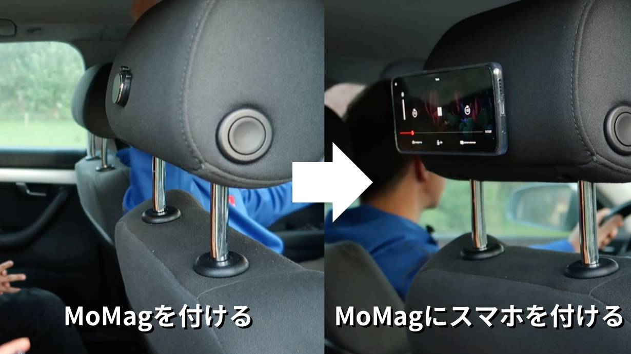 車・電車・高速バス等での移動中や、家の中でのリラックスタイムにMoMagを使えば、座席やソファーにスマホを取付けて手ぶらで動画を楽しむことが出来ます。