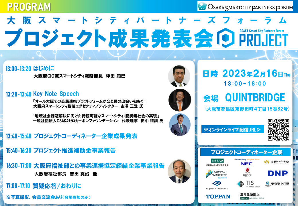 2月16日(木)「大阪スマートシティパートナーズフォーラムプロジェクト成果発表会」を開催します!
