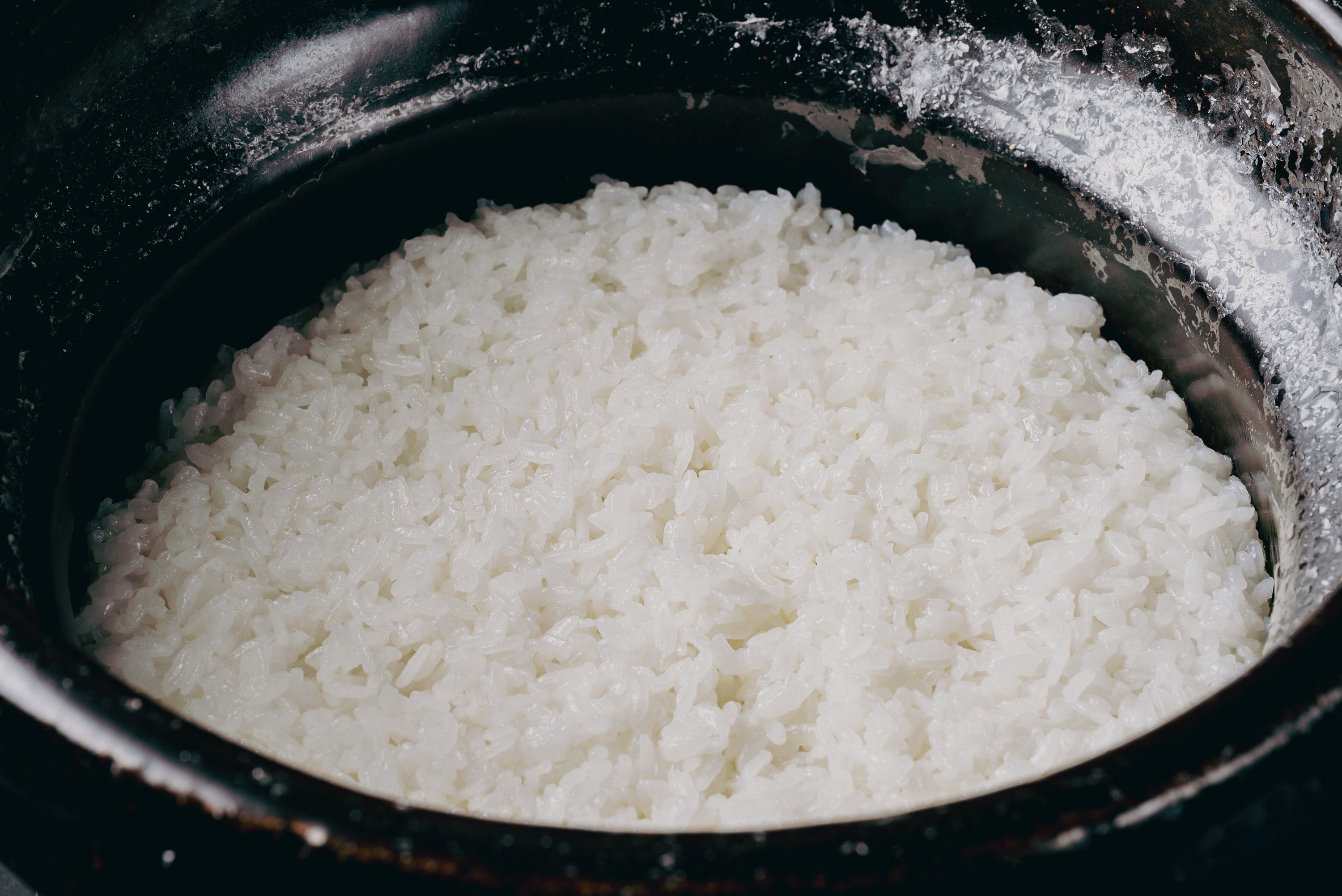 信楽焼の厚みのある特別な土鍋で炊き上げる熱々のごはんには、花崗岩でできた山々からミネラル豊富な伏流水が流れる、熊本の自然豊かな環境で育てられた幻のお米「旭」を使用しています。