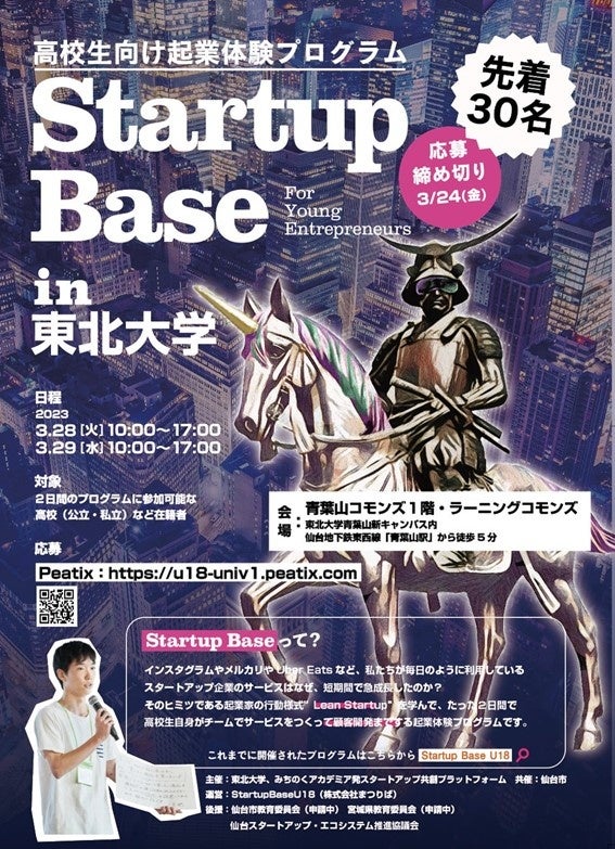 後援:仙台市教育委員会(申請中)、宮城県教育委員会(申請中)、仙台スタートアップ・エコシステム推進協議会
