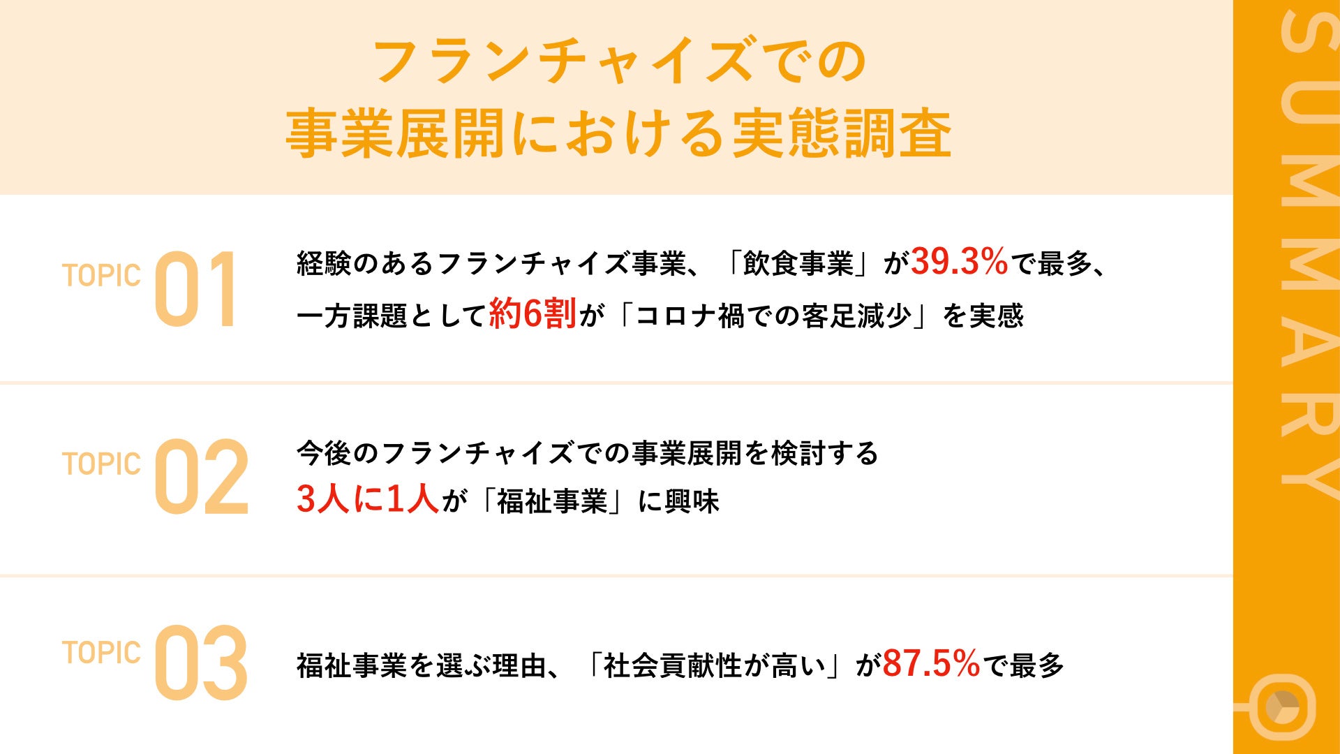 - 約半数の経営者が、フランチャイズ契約での事業展開を検討