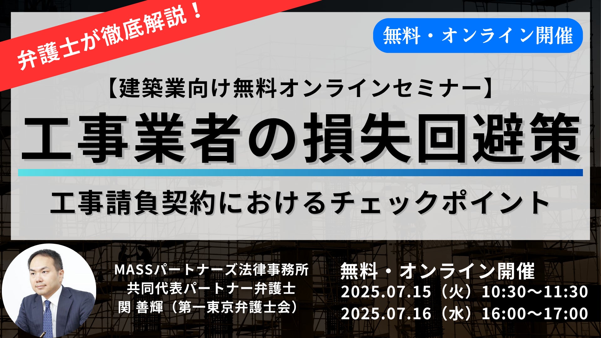 『工事業者の損失回避策』をテーマに弁護士が無料オンラインセミナーを開催
