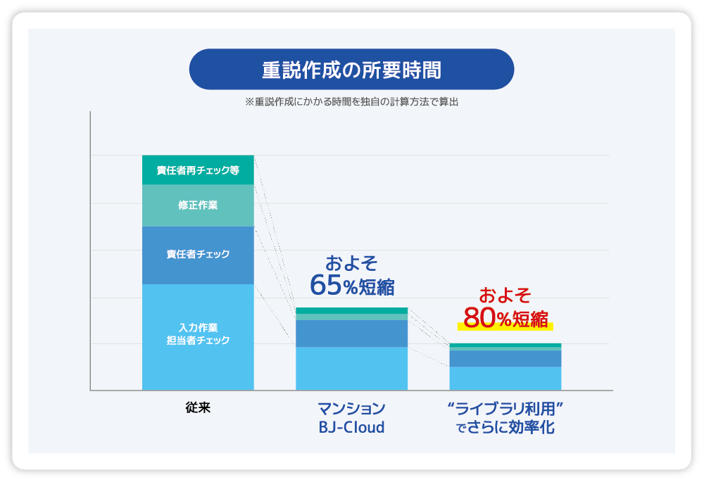 - 重説作成の所要時間が、システム利用のみで約65%、ライブラリ利用で約80%短縮